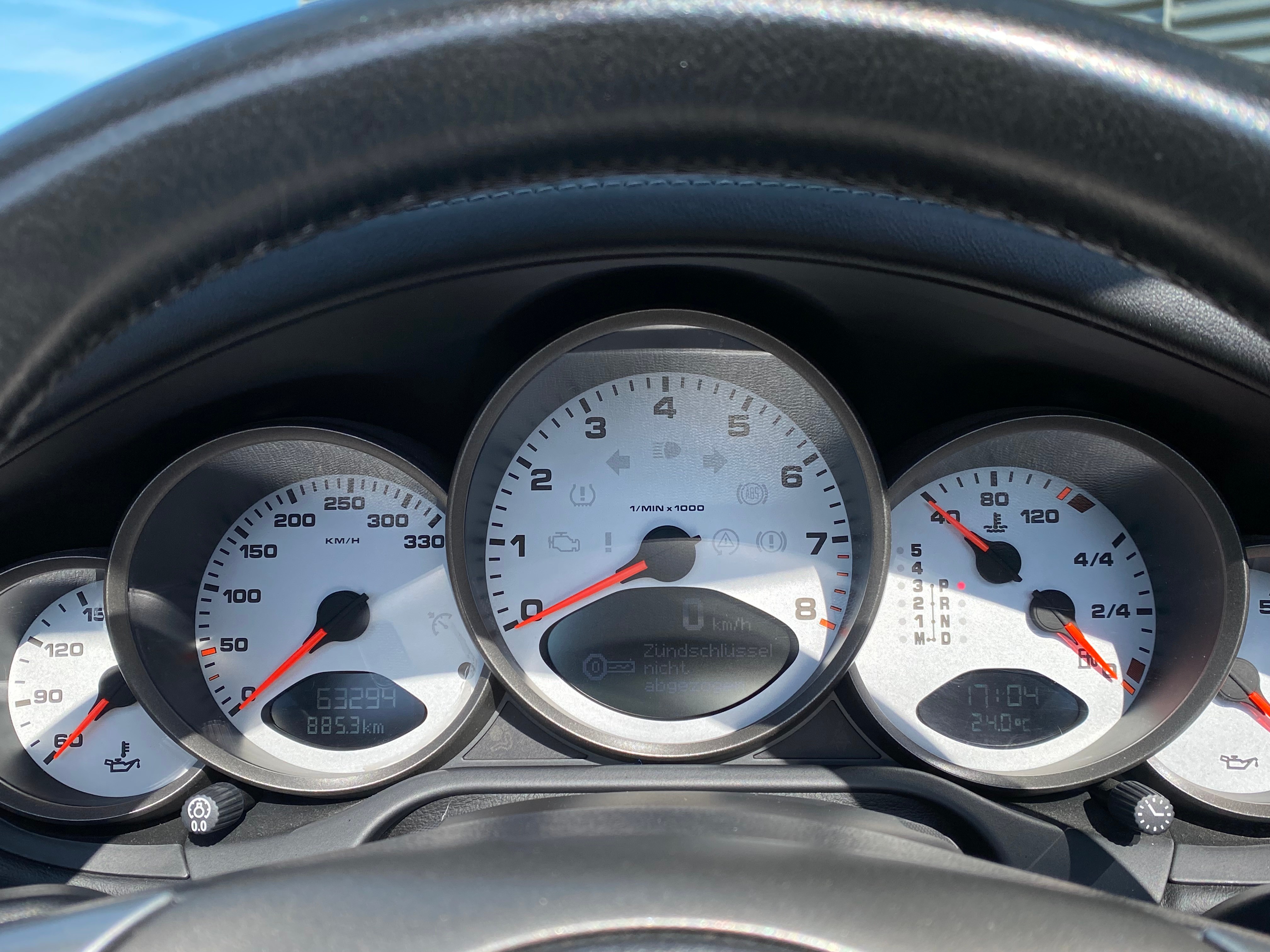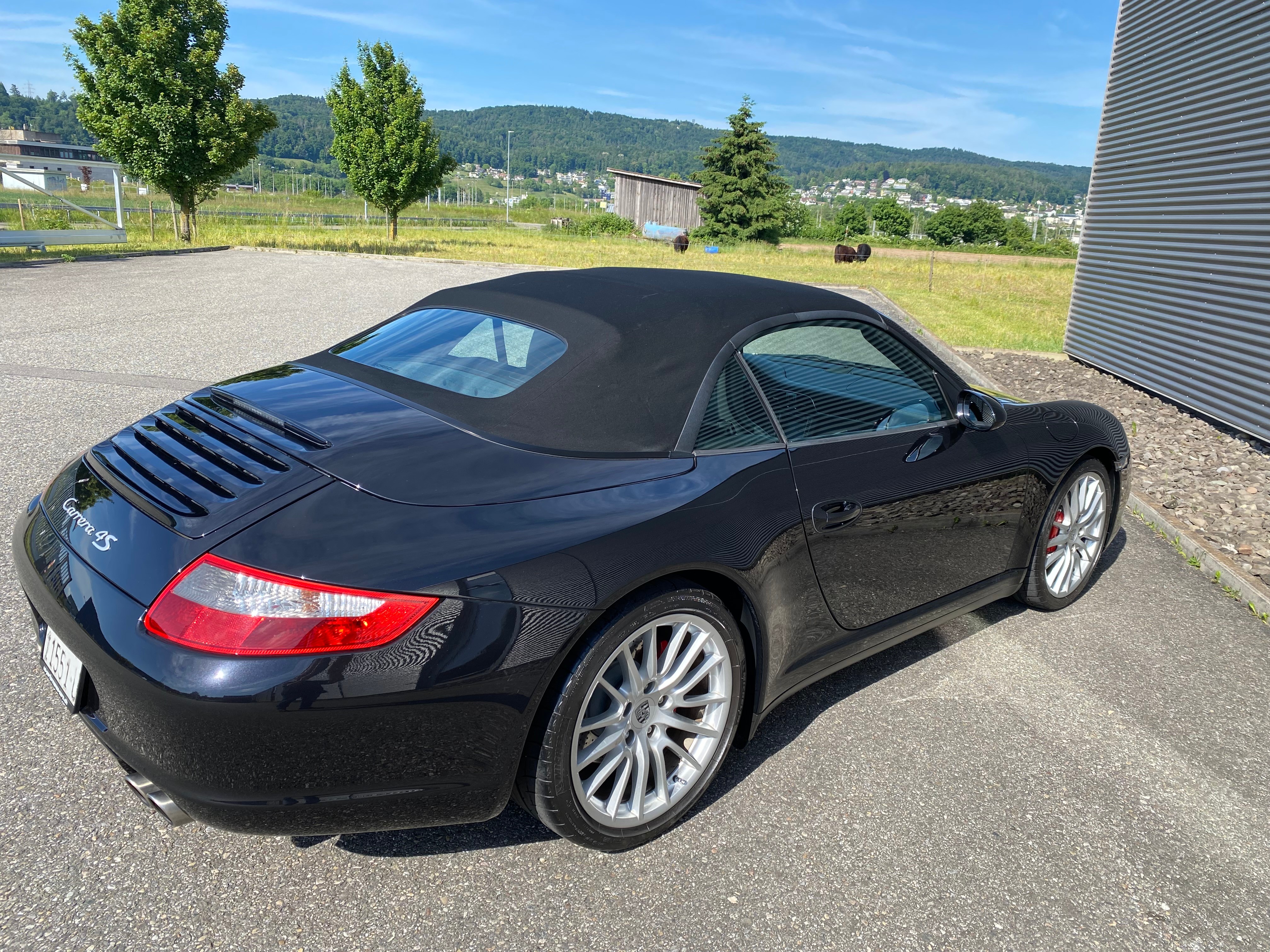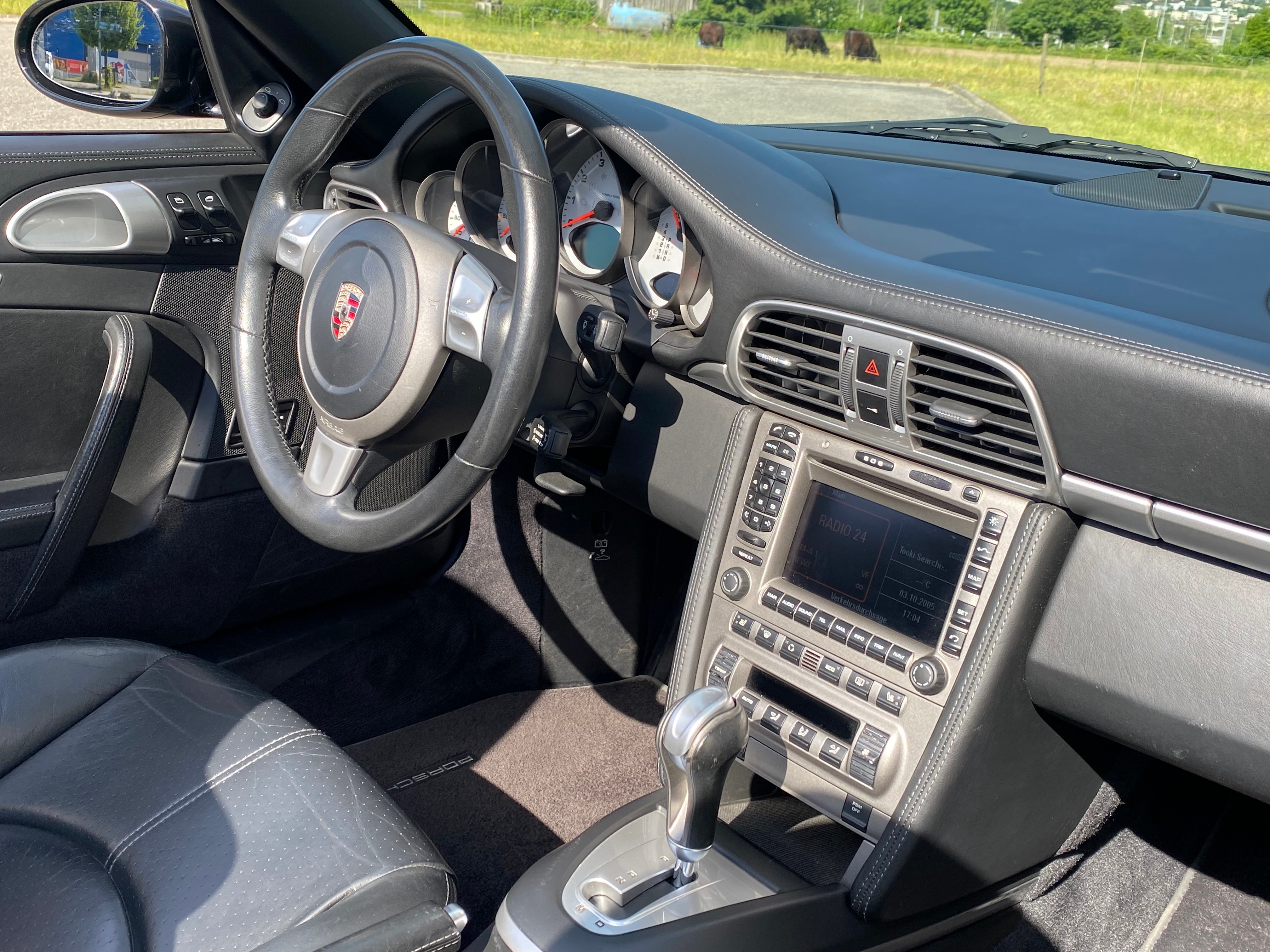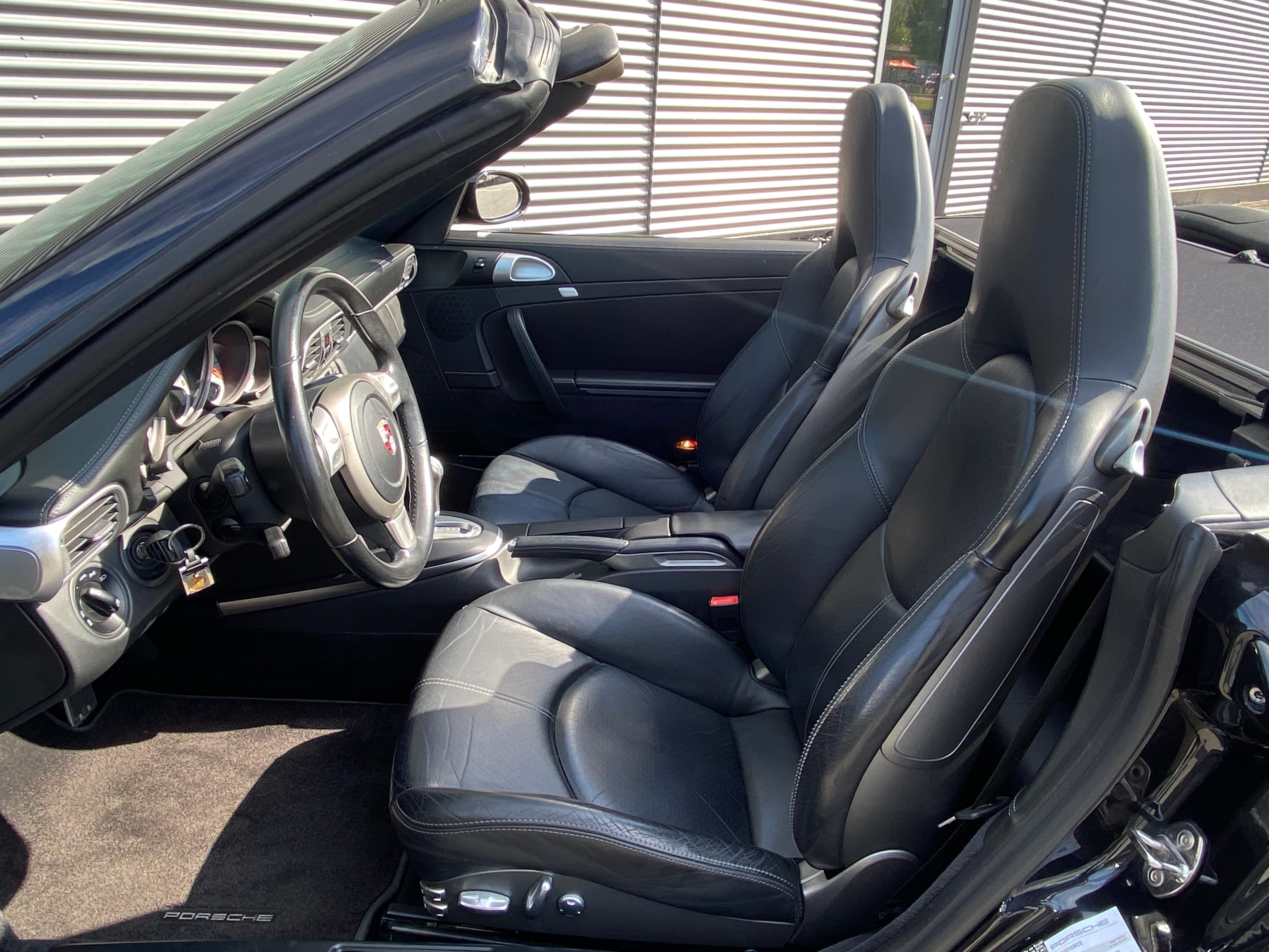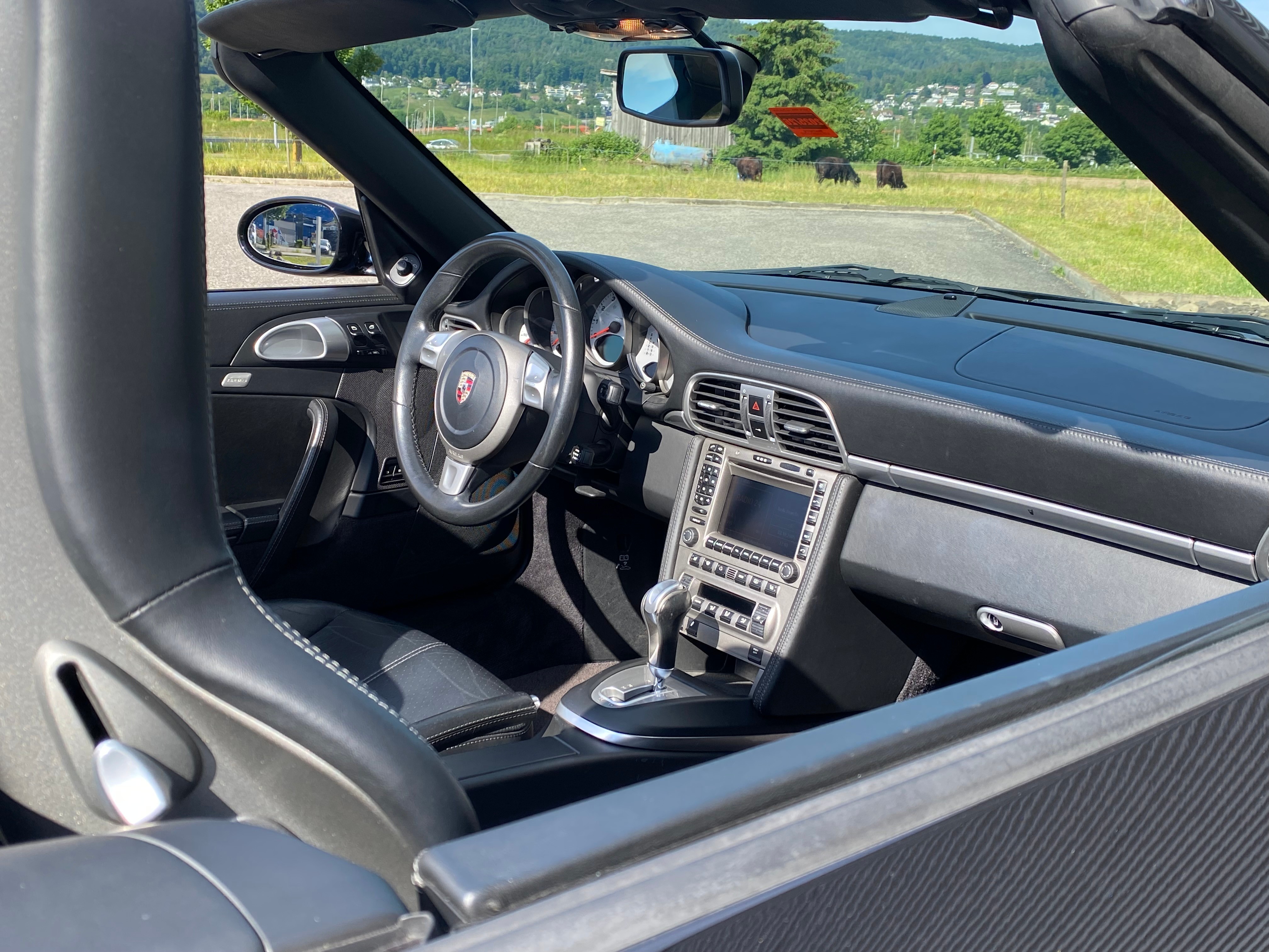Wegfahrsperre elektronisch, Bi-Xenon-Scheinwerfer inkl., Klimatisierungsautomatik, Antiblockiersystem (ABS), Abschliessbares Handschuhfach, Radio/CD-Player, Katalysator geregelt, Cupholder vorne, Sitzbelegungserkennung für Airbags, Tageskilometerzähler, Diebstahlwarnanlage mit Innenraum-, Vorbereitung für CD-Wechsler, Lenkrad: Lenkrad längs- und höhenverstellbar, Getriebe: 6-Gang-Getriebe, Aussentemperaturanzeige, Lederhandbremshebel, Abblendlichtausschaltverzögerung, Antriebsschlupfregelung (ASR), Elektrische Fensterheber vorne + hinten, Rücksitzlehne abklappbar, Airbag: Seitenairbags, Aussenspiegel und Türgriffe in, Digital Uhr, Fahrstabilisierungssystem Porsche, Drehzahlmesser, Netzwindschott, Wassertemperaturanzeige, Teilledersitze, Heckspoiler automatisch, Servolenkung, Heckscheibenheizung, Vordersitze höhenverstellbar, Mittelkonsole mit Ablagefach, ISOFIX Kindersitzvorrichtung, Aussenspiegel rechts und links beheizt und elektrisch verstellbar, Abschliessbare Radschrauben, Bordcomputer, Kofferraumfernentriegelung, Soundsystem, Elektrisches Verdeck mit Fernbedienung, Beide Make up-Spiegel beleuchtet, Zentralverriegelung mit Fernbedienung, Oeldruckanzeige, Gurtstraffer vorne, Stabilisatoren vorne und hinten, Getönte Scheiben, Drittes Bremslicht, Bremsbelag-Verschleissanzeige, Garantie: Porsche Garantie 2 Jahre ohne Kilometerbegrenzung (ab 1. Inv.), Sport-Lederlenkrad, Überrollschutzsystem, Lackierung: Uni-Lackierung, Leuchtweitenregulierung automatisch, Seitenfenster mit wasserabweisender Beschichtung, Oeltemperaturanzeige, Porsche Active Suspension Management (PASM), Räder: Reifenreparatur-Set mit Kompressor, Radiovorbereitung, Scheibenantenne, Ent-, Nebelscheinwerfer, Aktivkohlefilter (Geruchsfilter), 4 Leichtmetallfelgen Carrera S 19J, Airbag: Airbag Fahrer und Beifahrer, Licht: Nebelschlussleuchte, Info-Display, Airbag: Window-Kopfairbags, Ohne Modellbezeichnung, Allradantrieb permanent, Scheibenwischer vorne mit Intervall