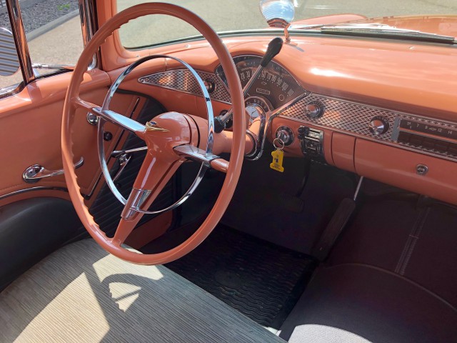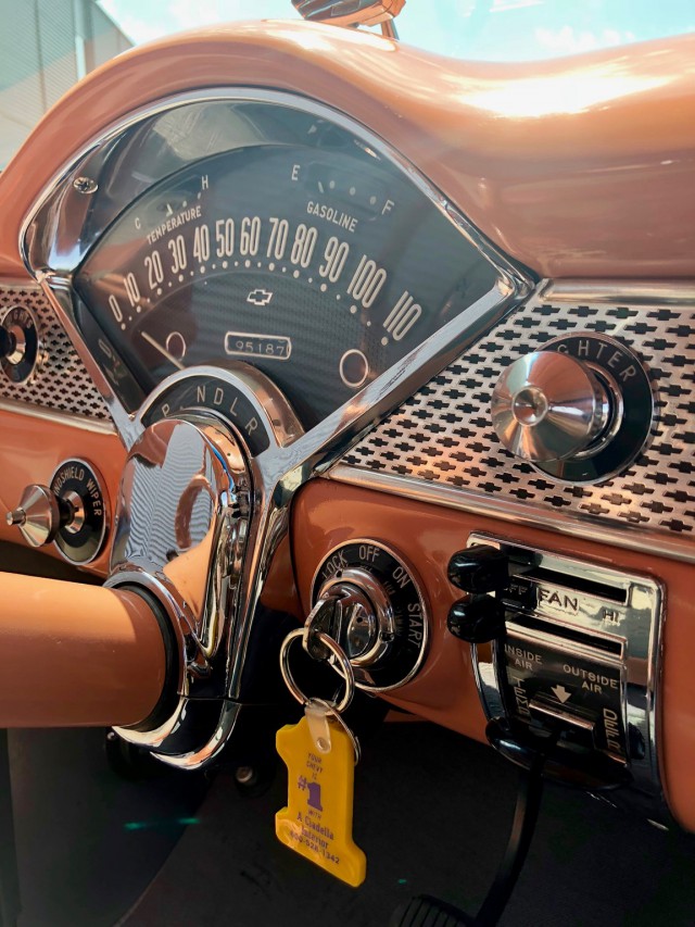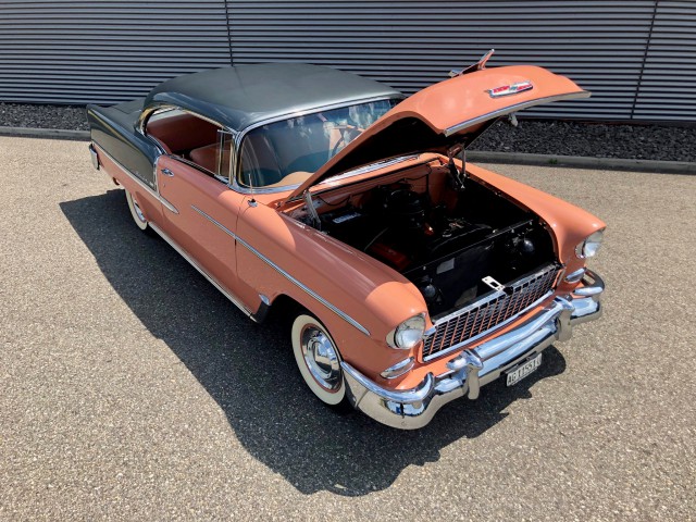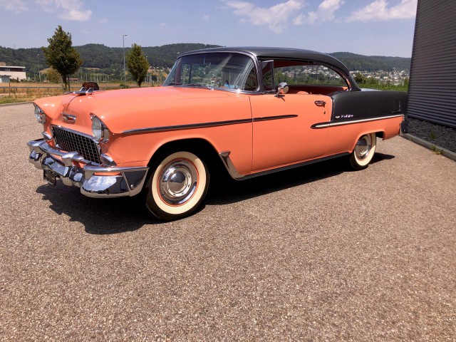 Einzigartiger 55 Belair mit einer super tollen Lackierung Original shadow gray/coral. Wir haben eine grosse Freude diesen Wagen Ihnen anbieten zu dürfen. Zurzeit sind wir an der Arbeit den Wagen für die MFK Prüfung fertigzustellen. Selbstverständlich können Sie den Wagen gerne bei uns besichtigen, vereinbaren Sie einen Termin mit uns. Wir sind überzeugt dieser Chevi ist ein Juwel - der jedem Fan der 50 Jahre US Cars das Herz schneller schlagen lässt. Wir freuen uns auf Ihren Besuch. PS: Weitere US Classic Fahrzeuge an Lager - oder gerne suchen wir Ihren Wunschwagen - fragen Sie uns an.