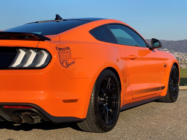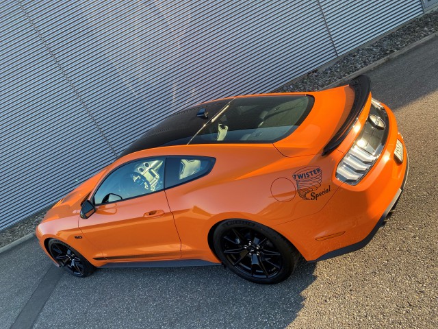 Einer von den wenigen orangen Twister Mustangs - fully loaded - die ausgeliefert worden sind. Wir freuen uns das wir ein so seltener Mustang Ihnen anbieten dürfen. Der Wagen hat alle Optionen mit Fahrwerksoptimierung, Magnaride - Tieferlegung mit ST Komponenten, Recaro Leder - Sportsitzen, B&O Soundsystem inkl. Subwoofer, DAB, Magnaride - elektronisch geregeltes Fahrwerk, LCD Display, Navigationssystem, Parksensoren, Rückfahkamera, 19" Alufelgen mit 255/40 R19 vorne sowie 275/40 R19 Michelin Sport Bereifung für den richtigen Grip, lackiertes Dach in absolute Black, GT 350 Spoiler, Auspuffklappensystem, usw., usw., usw. ... .