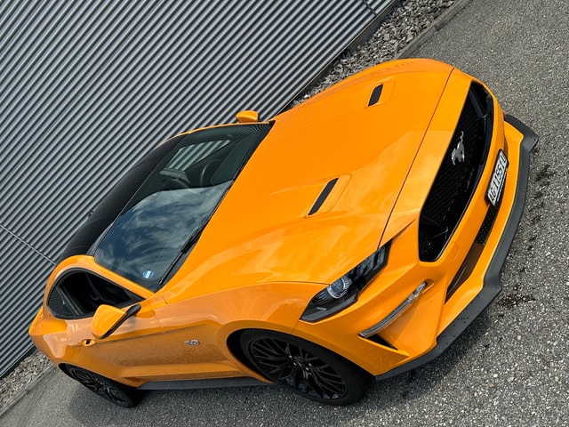 Mustang GT in orange fury Lackierung - fully loaded - . Wir freuen uns sehr, dass wir Ihnen diesen Mustang anbieten dürfen. Der Wagen hat alle Optionen Leder - Sportsitze Recaro, B&O Soundsystem inkl. Subwoofer, DAB, LCD Display, Navigationssystem, Apple CarPlay, Android, Parksensoren, Rückfahrkamera, für den richtigen Grip - 19" Alufelgen im 10Y Doppelspeichen Design mit 255/40 R19 vorne sowie 275/40 R19 Michelin 275/30 R 20 Michelin Pilot Sport 4S, getönte Scheiben im Fond, Auspuffklappensystem usw., usw., usw.